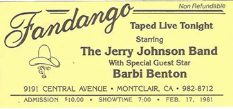 Director of Production for Cine-Media International, Travis helped create Fandango, hosted by Bond Johnson's son, Jerry Johnson and showcasing his band. Travis supervised the pre-recording at Conway Studios in Hollywood, then directed the 30- minute country-western variety show with country singer guest star Barbi Benton, best known for her comedy skits on the long-running TV series, Hee-Haw. This was Conway studios audio engineer Philip Moores first location TV sound assignment. (This photo was snapped on the fly by Barbi's press agent, which is not the same thing as getting caught!) |