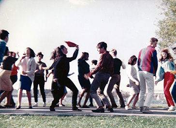 In this black and white still, you have to look closely to see the film crew, crowded in the bow, shooting the beautiful Swan Boat reconciliation scene between Ted (Travis Pike), and Karen (Patricia Ewing).