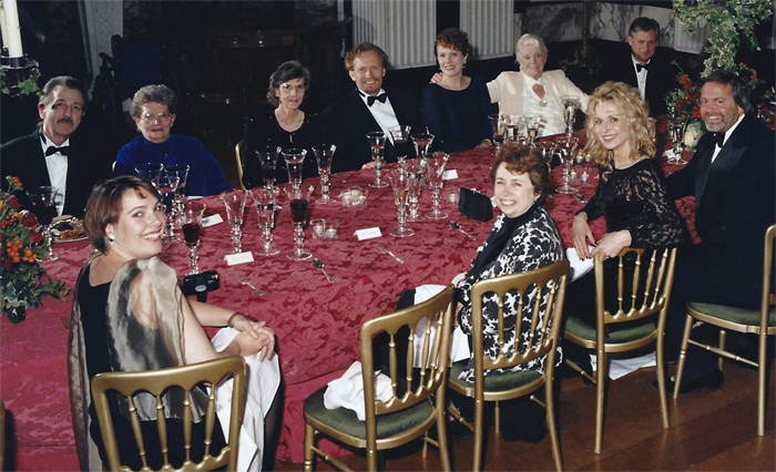 I am in the center on the far side of the table.  On my left are Lynn Redgrave and her mother, Rachel Kempson (Lady Redgrave), and beyond her, George Wintour (who found a way we could afford to insure our use of Blenheim Palace).  On my right is my wife Judy, my mother Elsie, and music arranger and conductor, David Carr. On the near side of the table, from right to left, the then Marquis of Blandford represented the palace, then my Queen of the Sidh, Anna Scott and Dee Weiner, a Grumpuss fan from Los Angeles. Post production supervisor Philip Moores had gone missing when the photograph was taken, but that's his charming wife, Amanda, on the left.